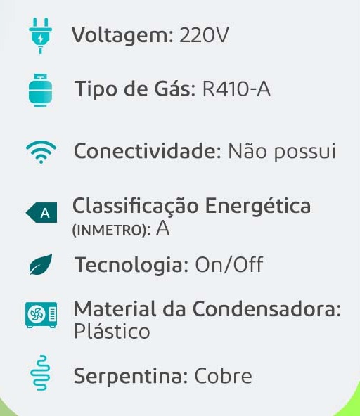 Além disso, este modelo oferece conectividade Wi-Fi (Kit Wi-Fi disponível para aquisição separadamente), permitindo um controle prático e eficiente.